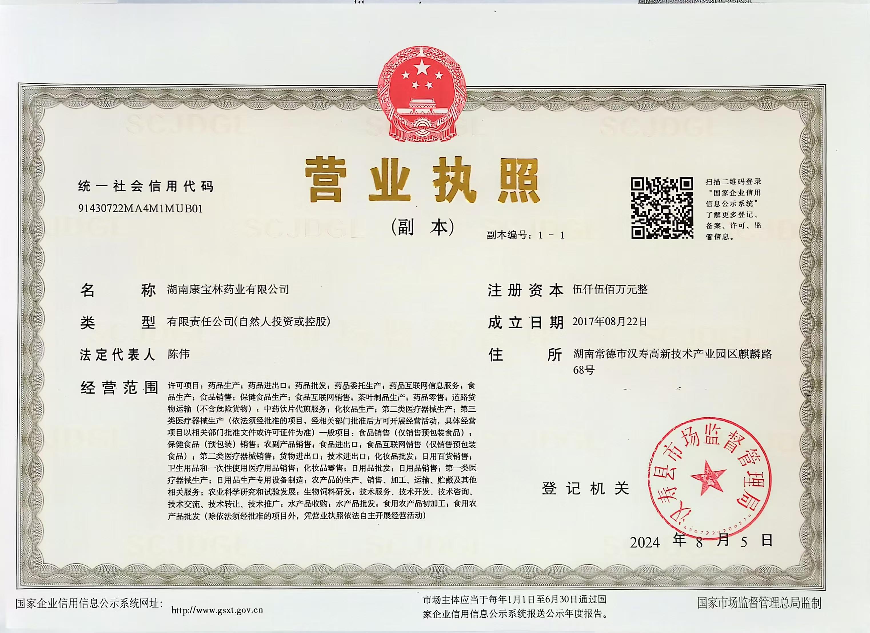 湖南康宝林药业有限公司成立于2018年9月,企业类型为有限责任公司。公司位于湖南省常德市汉寿县高新技术产业园区麒麟路68号,是一家集中药研发、中药材种植、中药饮片生产、中药提取深加工、销售、医药互联网为一体的现代化中药生产企业,为湖南省高新技术企业,湖南省农业龙头企业,湖南省专精特新“小巨人”企业。公司注册资金伍仟五百万元,员工112人,其中高级职称2人,药学相关技术专业人员38人;公司占地面积123亩,生产厂房面积8600㎡,生产品种涵盖传统普通中药饮片、毒性中药饮片、直接口服饮片、罐装精致饮片、分剂量小袋包饮片,生产品种545个,品规1436个。仓储面积11000㎡,其中阴凉库面积4500㎡,冷库面积1800㎡。公司重视科研投入,拥有知识产权方面6件专利,其中发明2件、实用新型专利4件,在申请的5件。公司建设有13个中药材合作基地:汉寿鳖甲,汉寿百绿桥枳实、枳壳,石门陈皮、淫羊藿,澧县蜈蚣、石菖蒲,四川三台麦冬,山西黄芩、苍术、柴胡,甘肃黄芪、党参,海南裸花紫珠等品种。2023年销售10708万元,完成税收220万元,2024年完成13000万元,2025年预计完成18000万元。业务合作单位有湖南省中西医结合医院、常德市中医院、省人民医院、永州市中医院等三甲医院和华润湖南、华润双舟、上药湖南、湖南省医药集团、湖南老百姓、湖南九芝堂股份等知名企业。